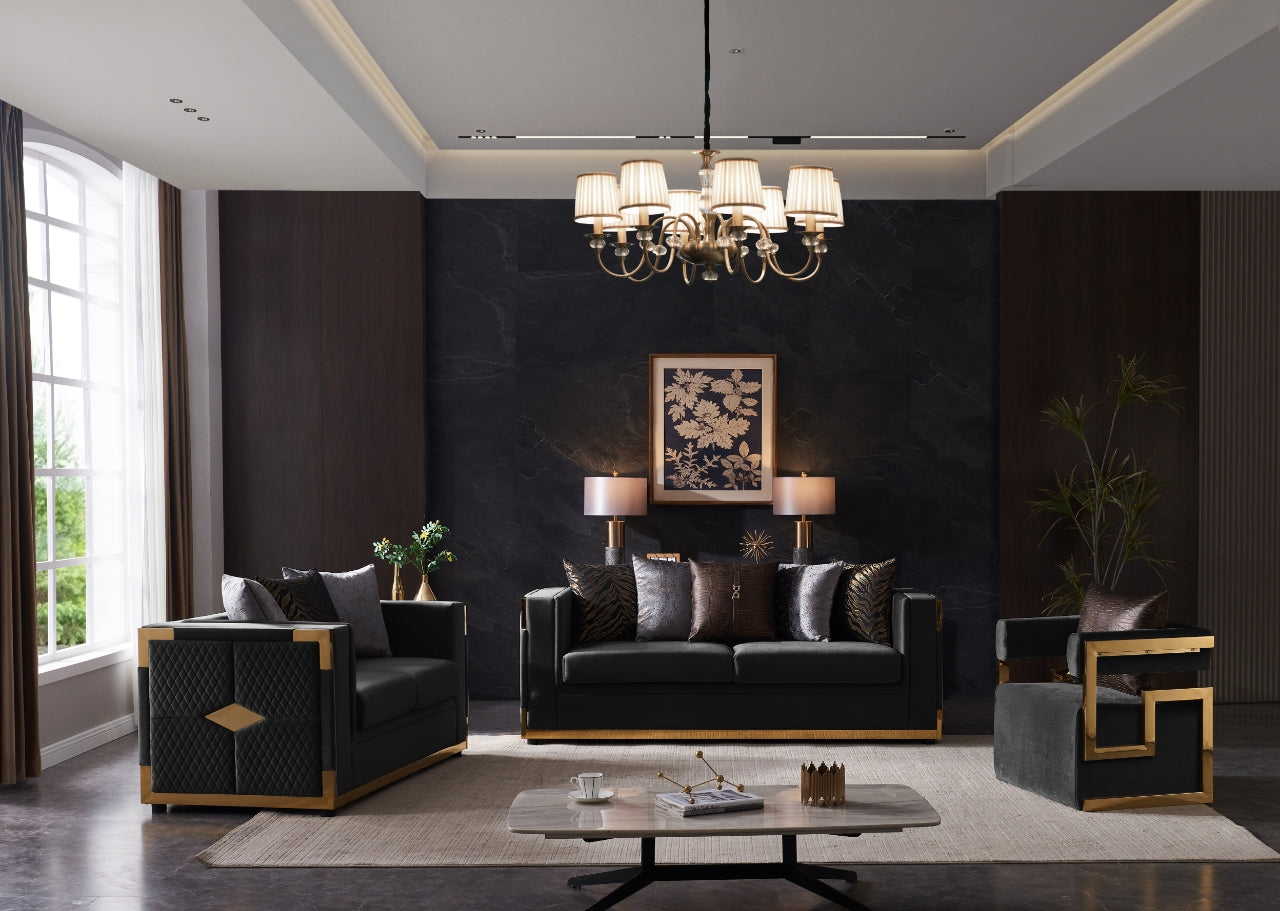 The 304 Sofa & Loveseat brings contemporary style to any living room with its clean lines and versatile color options including black, gray, cream, and brown.