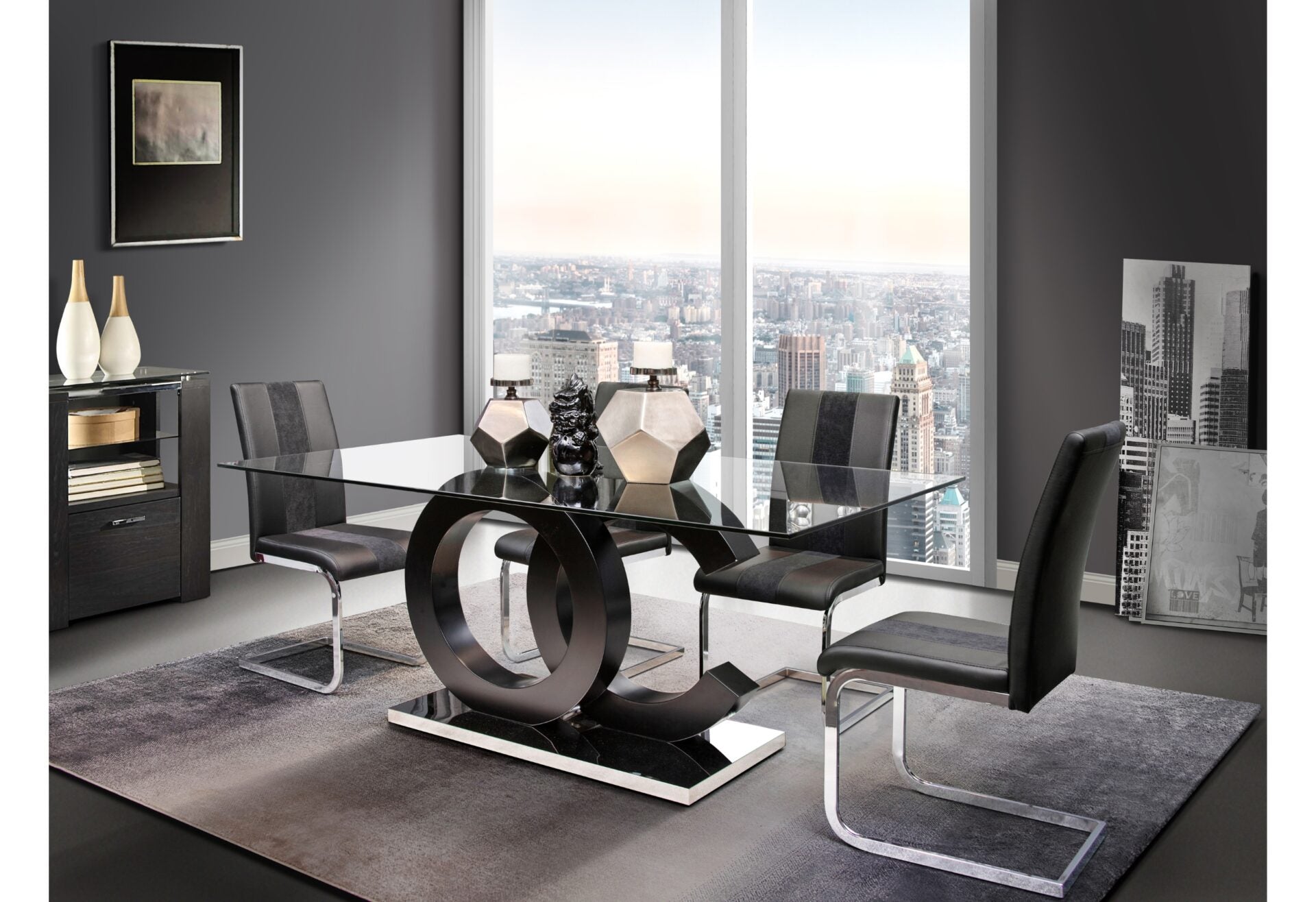 This contemporary dining table features a distinctive base design that makes a bold statement in modern interiors. Built with quality materials for lasting durability, it combines striking aesthetics with functional elegance to enhance your dining space.