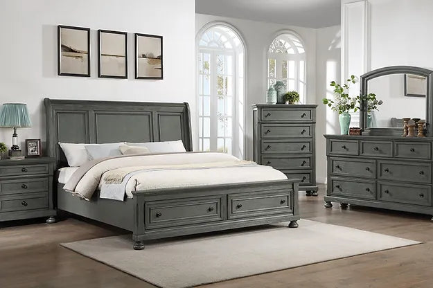 The Jackson Bedroom Set in Gray delivers sophisticated style and functional design for the modern bedroom. This comprehensive five-piece collection includes everything needed to create a cohesive sleeping space, featuring clean lines and a neutral gray finish that complements any décor aesthetic. Each component is thoughtfully constructed to provide durability and lasting appeal. The set's versatile design works seamlessly in contemporary, transitional, or minimalist interiors, making it an excellent choice for those seeking quality bedroom furniture that balances form and function. Transform your bedroom into a serene retreat with the Jackson collection's refined elegance and practical construction.
