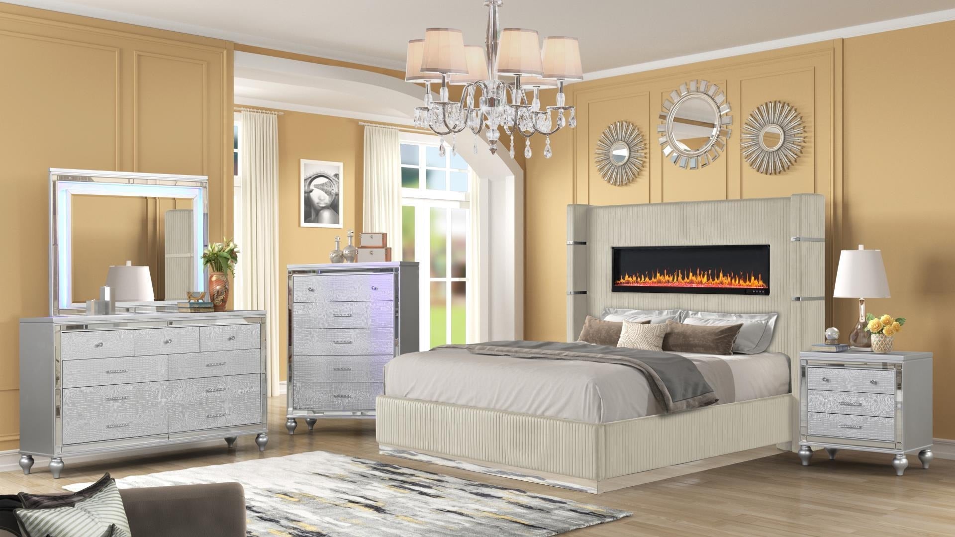 The Lizelle 5Pc Bedroom Set features a queen bed, dresser, mirror, and two nightstands in one coordinated collection. Built with durable materials and refined styling, it provides essential bedroom storage and a cohesive aesthetic.