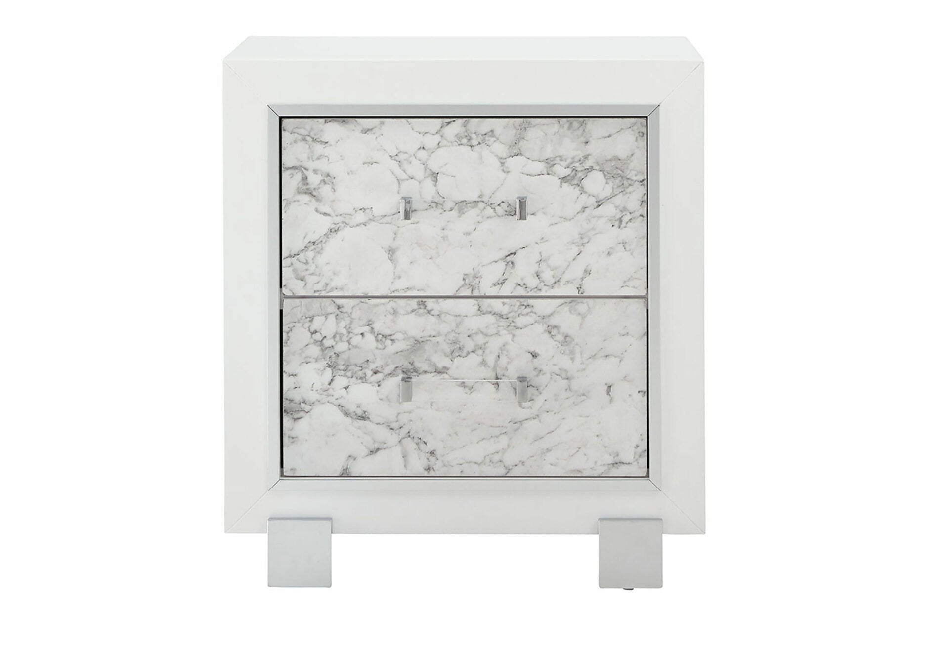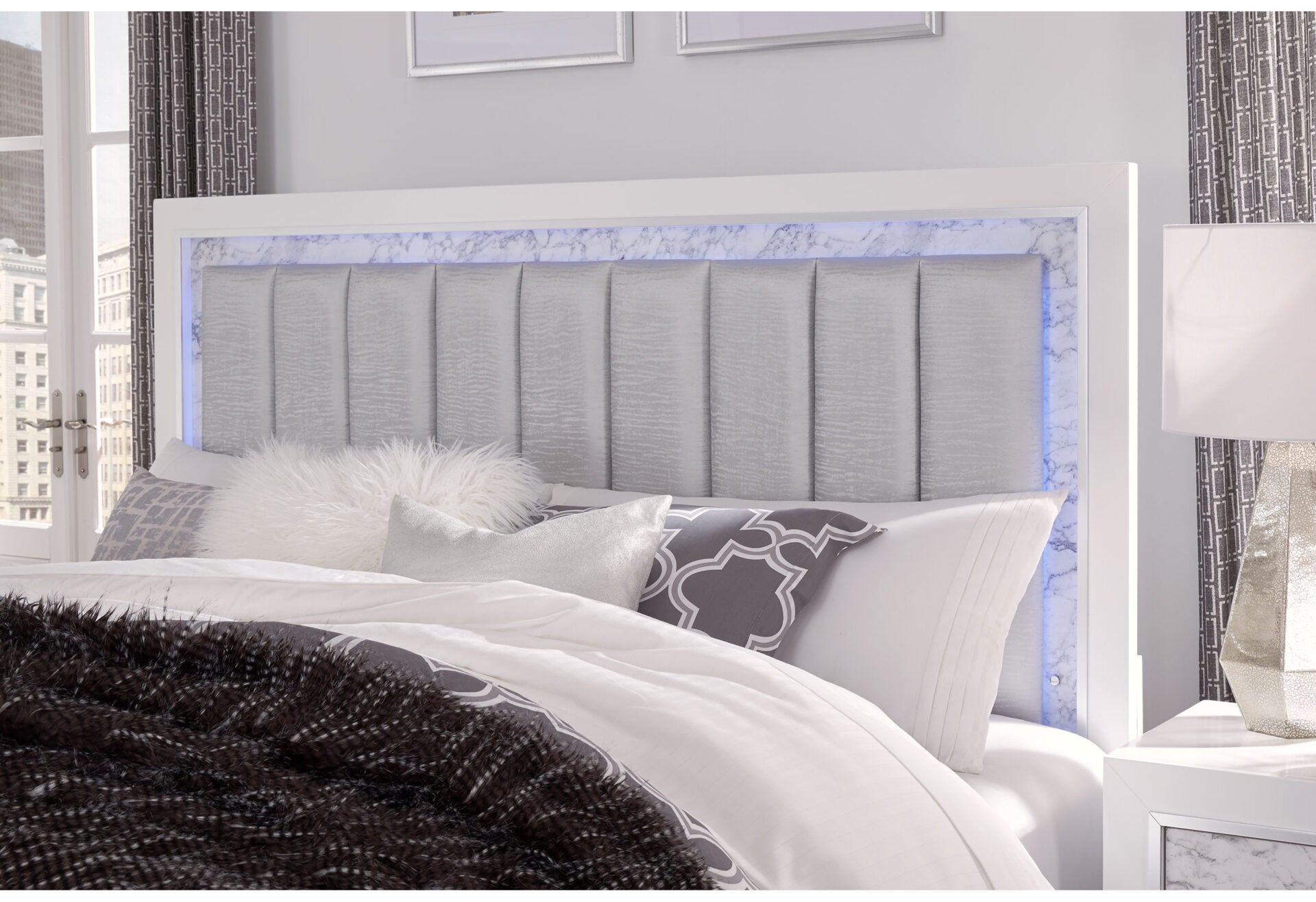 The Santorini bedroom set brings coastal elegance to your space with contemporary styling, faux marble details, and acrylic hardware. Ambient LED lighting creates a serene atmosphere perfect for relaxation and rest.